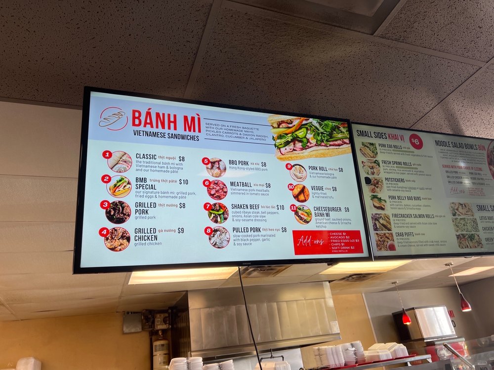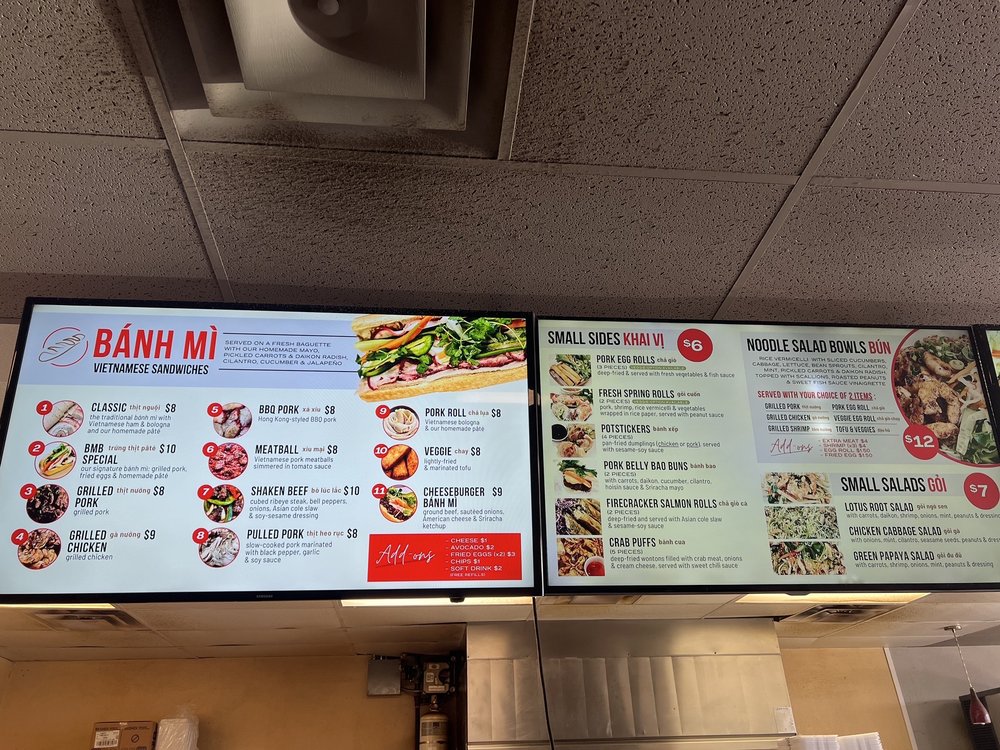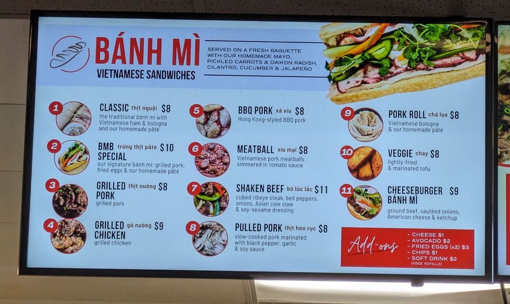 Thit nguoi. Vietnamese ham and bologna and pate. Would you like extras? : cheese, avocado: $1, chips: $1, soda: $2.